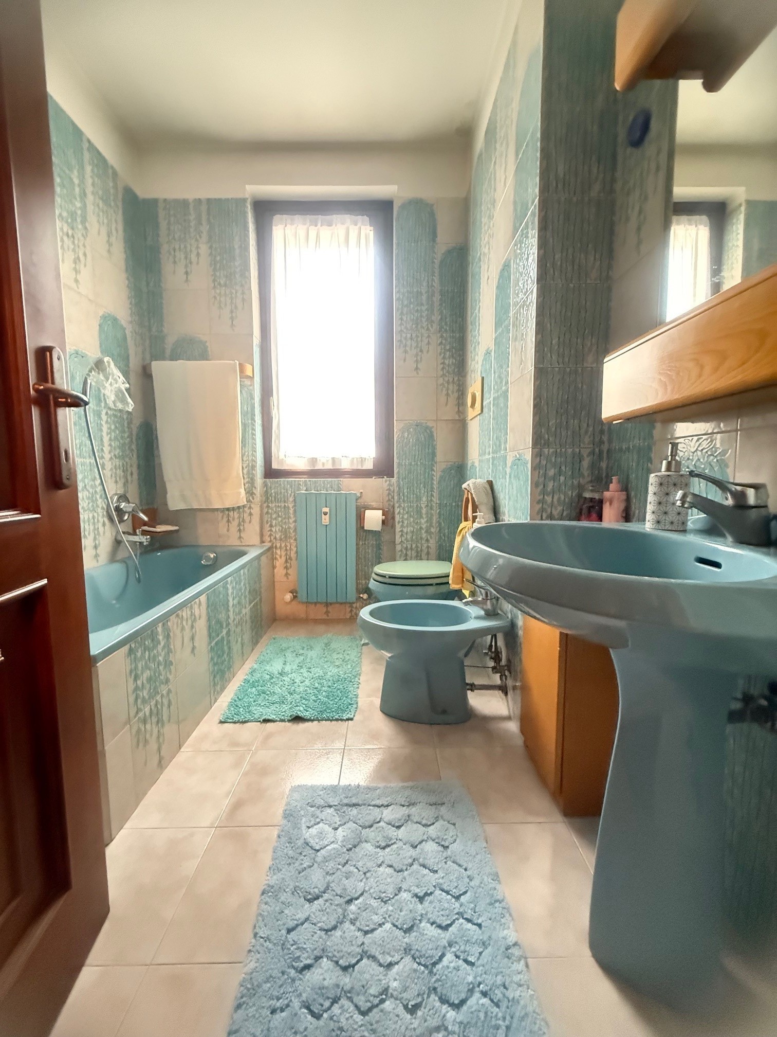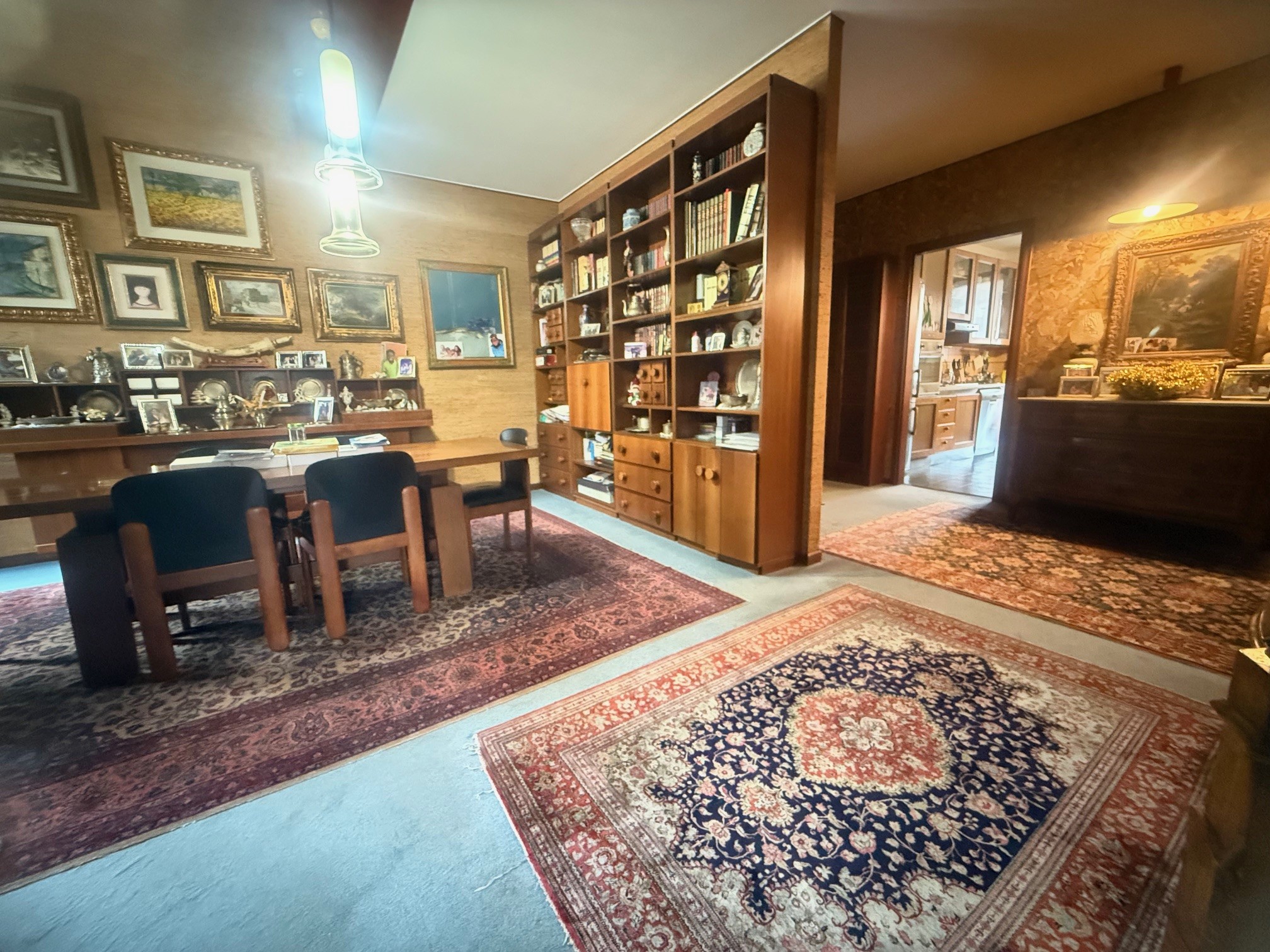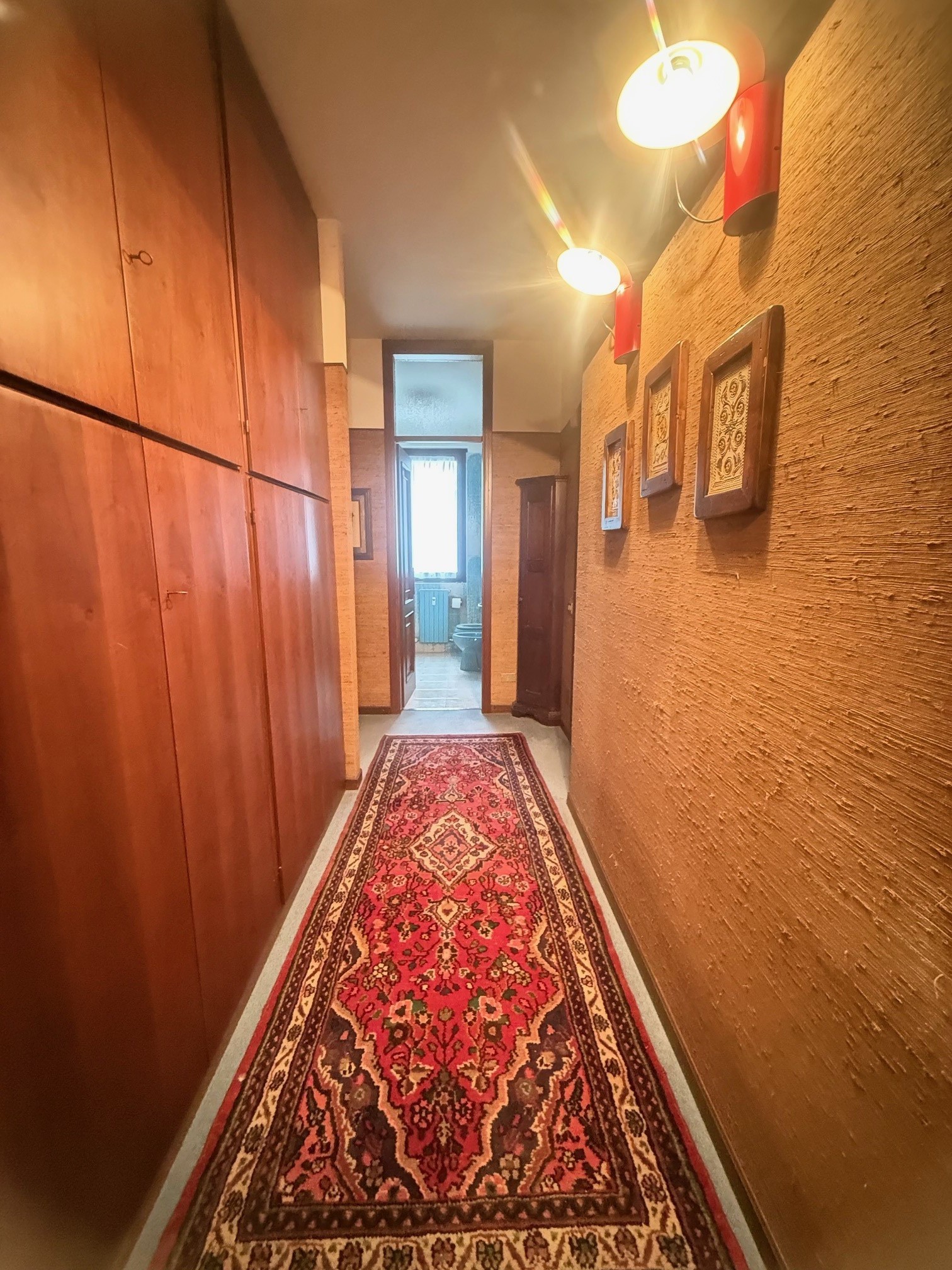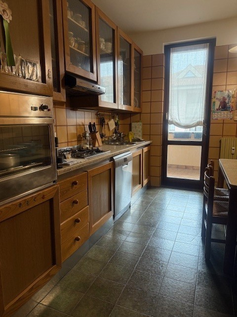 Solo l'appartamento interno è di mq 190 oltre balconi e terrazzi, box e cantina ed è così composto da ingresso, soggiorno con accesso al terrazzo di circa 30 mq, cucina abitabile con ampio balcone, 2 ripostigli, doppi servizi, lunghi disimpegni per accesso alla zona notte che si prestano per armadi a muro, 4 camere da letto, di cui una con bagno in camera e due stanze hanno accesso su ampio balcone.